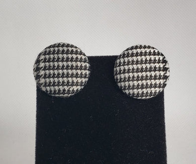 Houndstooth Fabric Covered Button Earrings