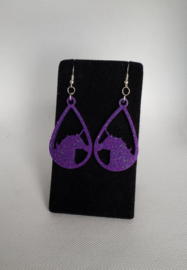 Unicorn Earrings in Amethyst with Iridescent Glitter