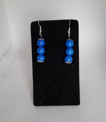 Triple Gumball Bead Earrings in Blue